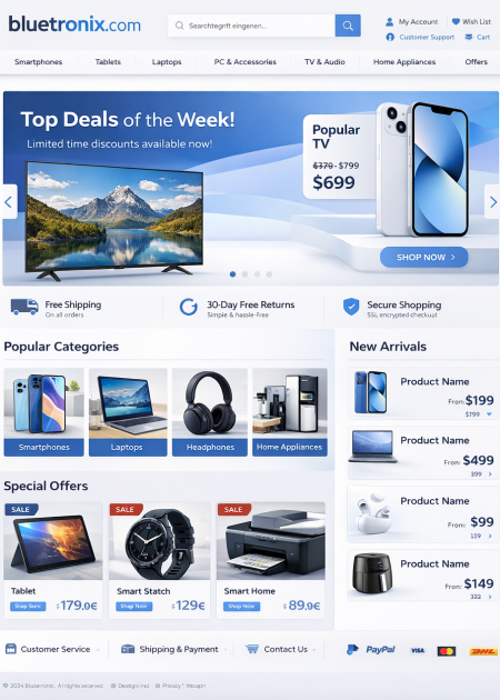 Bei bluetronix hast du mehrere Möglichkeiten, deinen Online-Shop umzusetzen. Egal, wie du startest: Du und dein Team könnt den Shop jederzeit selbst pflegen, Produkte und Inhalte veröffentlichen und – je nach Benutzerrechten – gemeinsam als Team arbeiten. Das Ganze funktioniert parallel über PC, Mac, Pad und Phone.
